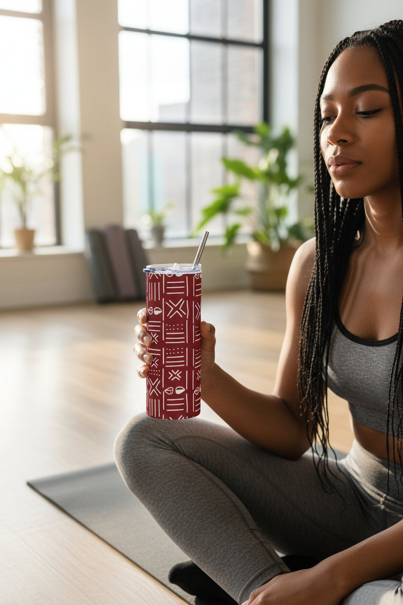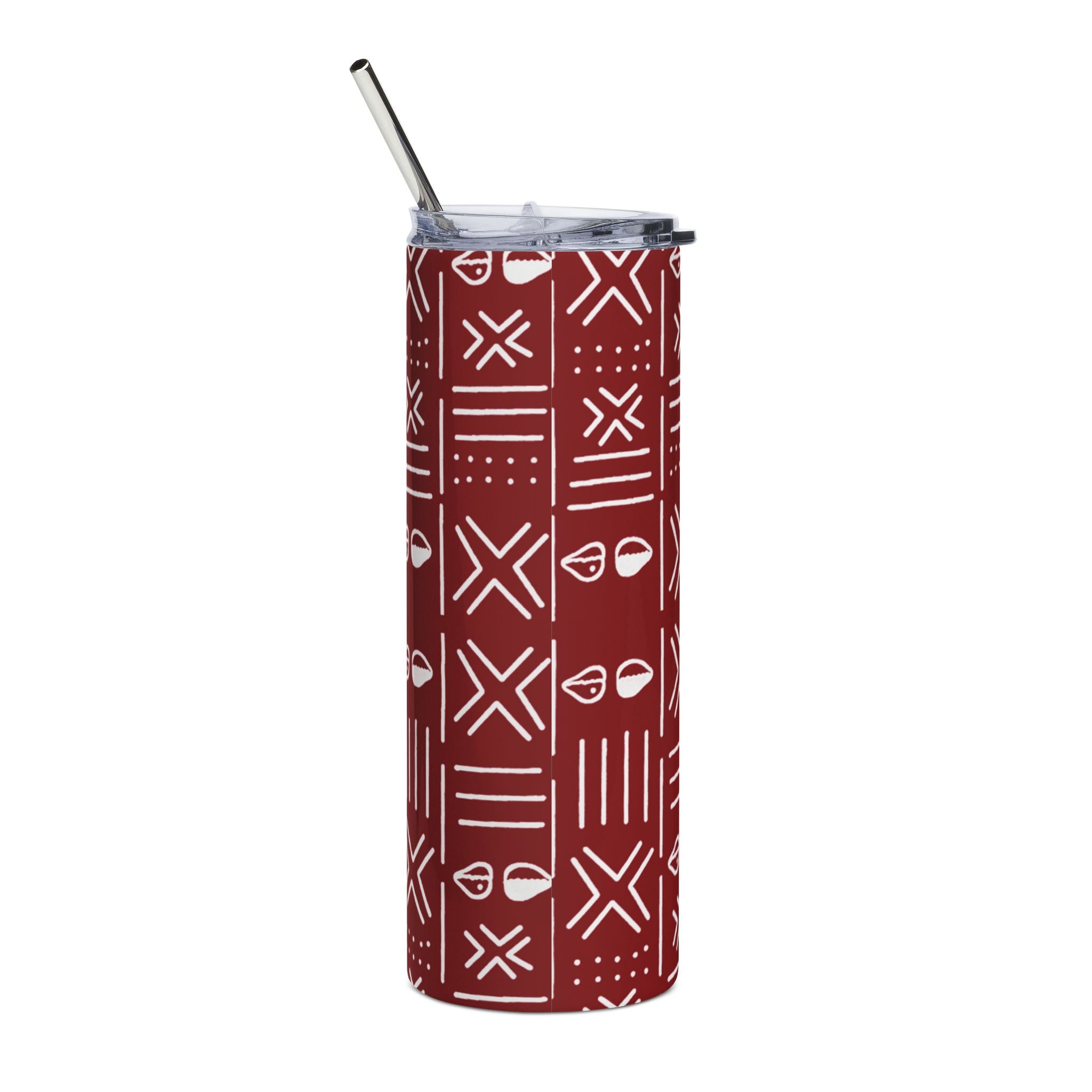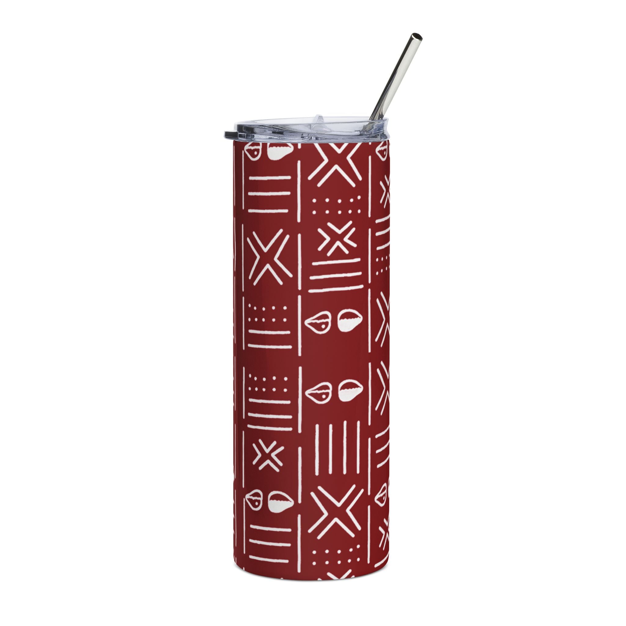 This red 20 oz stainless steel tumbler brings vibrant African-inspired cowrie shell art into your daily rhythm.