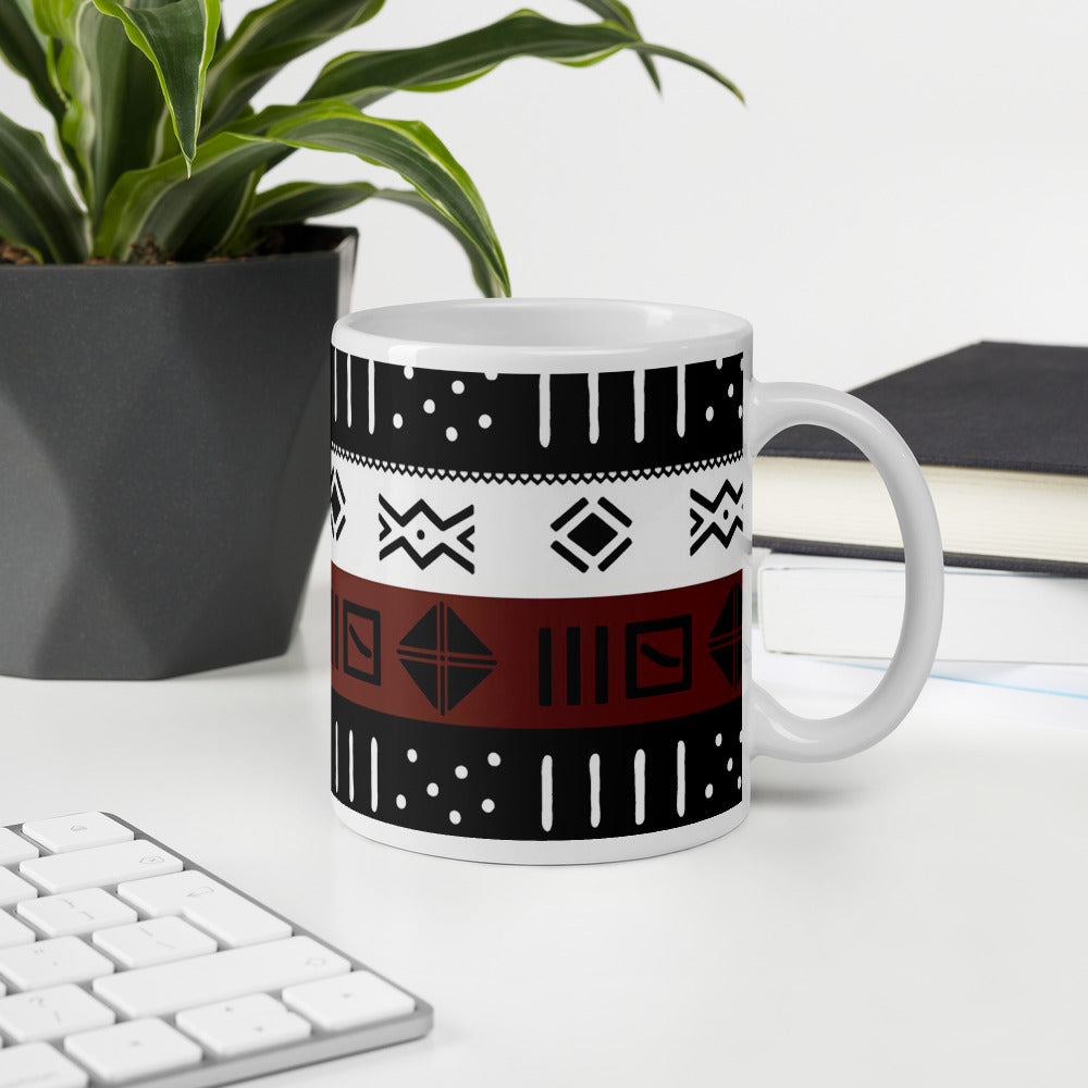 The coffee mug, adorned with a classic mud cloth pattern, not only elevates your morning brew or tea but also adds an artistic touch to their home. The carefully crafted design reflects the beauty of African art, making it a unique and stylish addition to their kitchen.