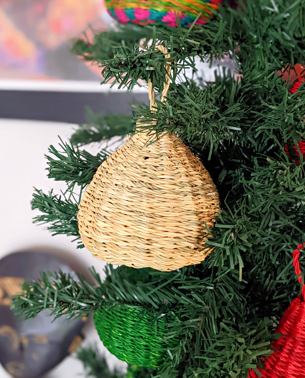 Our woven elephant grass tree ornaments will look beautiful on your mantel, shelf and Christmas tree.