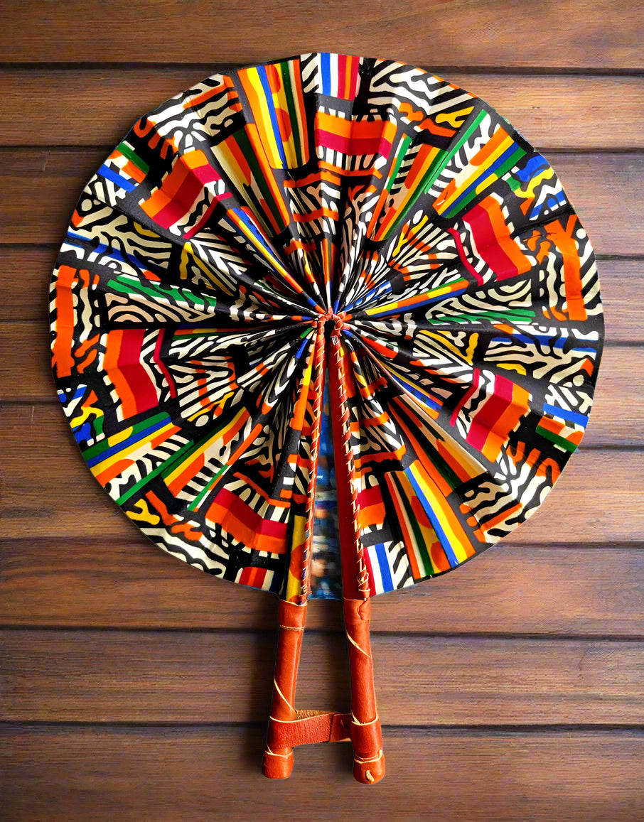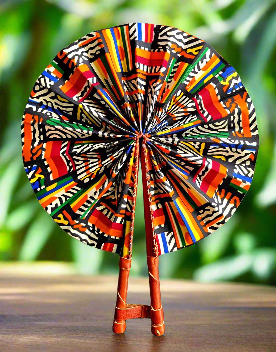 The diaspora vibes African fabric folding hand fan combines classic Afrocentric design with quality craftsmanship.